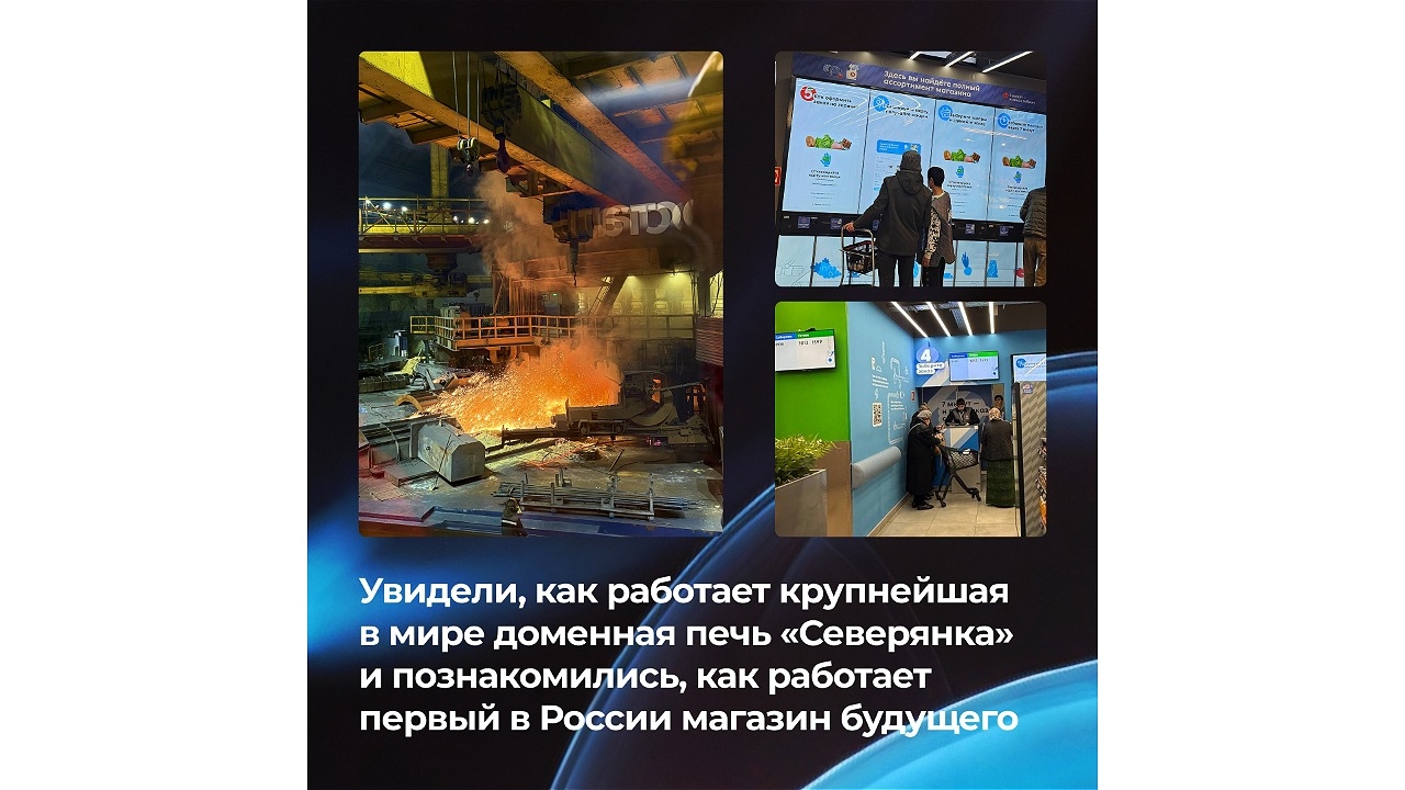 Увидели, как работает крупнейшая в мире доменная печь «Северянка», и познакомились с первым в России магазином будущего.