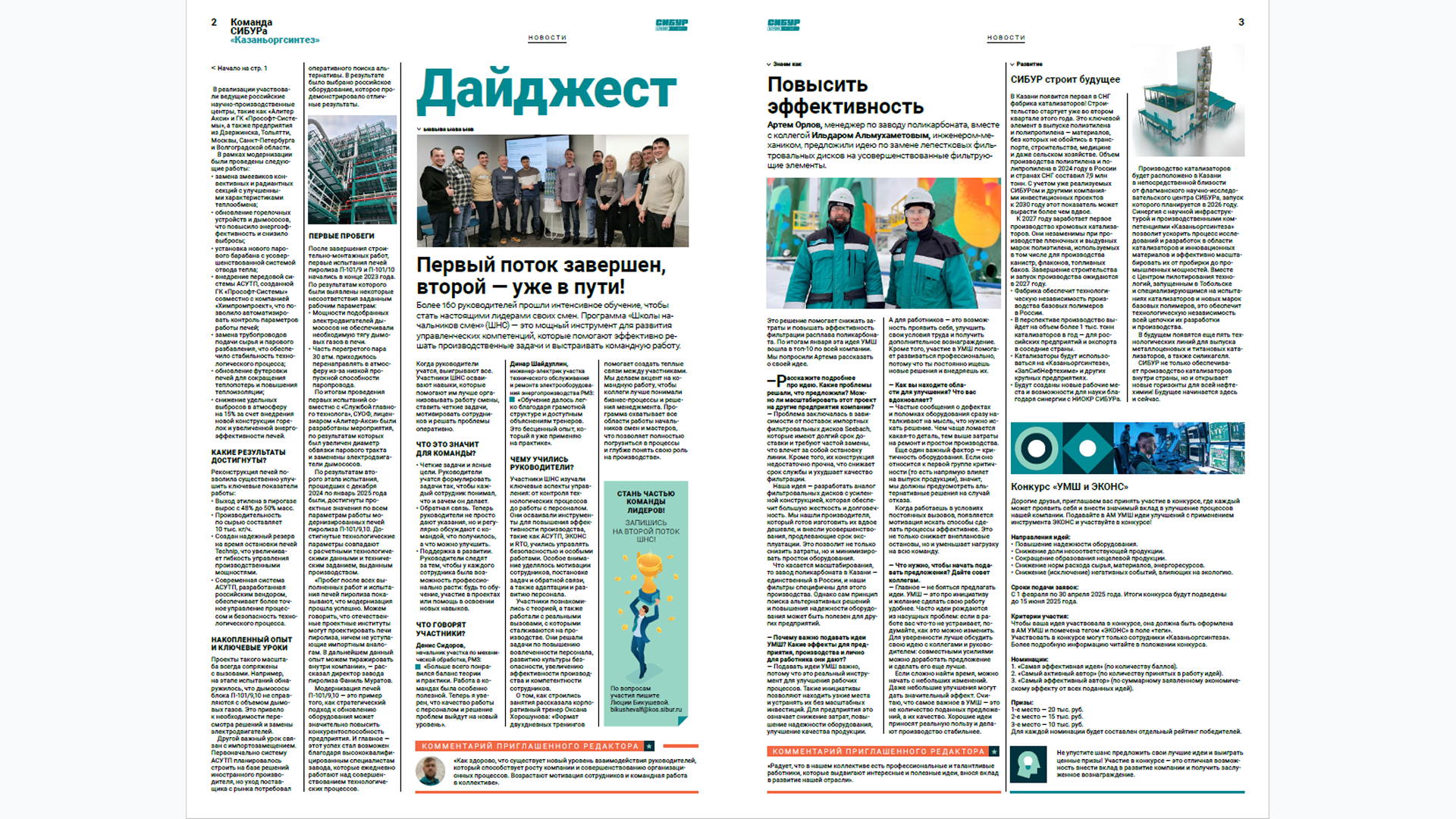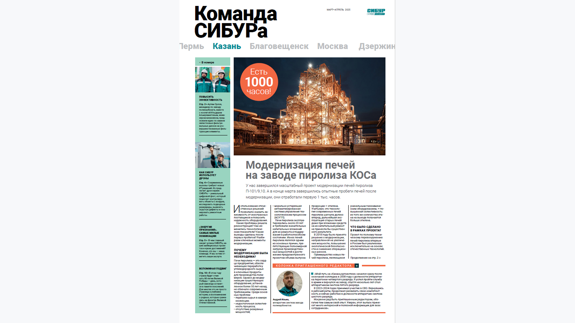 Еще у нас сохранились газеты. Большинство предприятий выпускает их ежемесячно, одно — еженедельно. Единый стандарт оформления и название, общий подрядчик и обязательная федеральная вкладка. Из интересных практик — раз в месяц мы берём производственного сотрудника и даём ему возможность поучаствовать в создании газеты, стать «приглашённым редактором». Для него это шанс заявить о себе, а для нас — получить «из первых рук» понимание, что интересно людям на местах. Для семей сотрудников ежеквартально выходит специальная вкладка в газете. С её помощью мы вовлекаем в жизнь компании всю семью сотрудника. А для детей сотрудников выпускаем научпоп журнал «СИБУР IQ», чтобы сформировать интерес к промышленности, науке, инновациям и профессиям будущего.