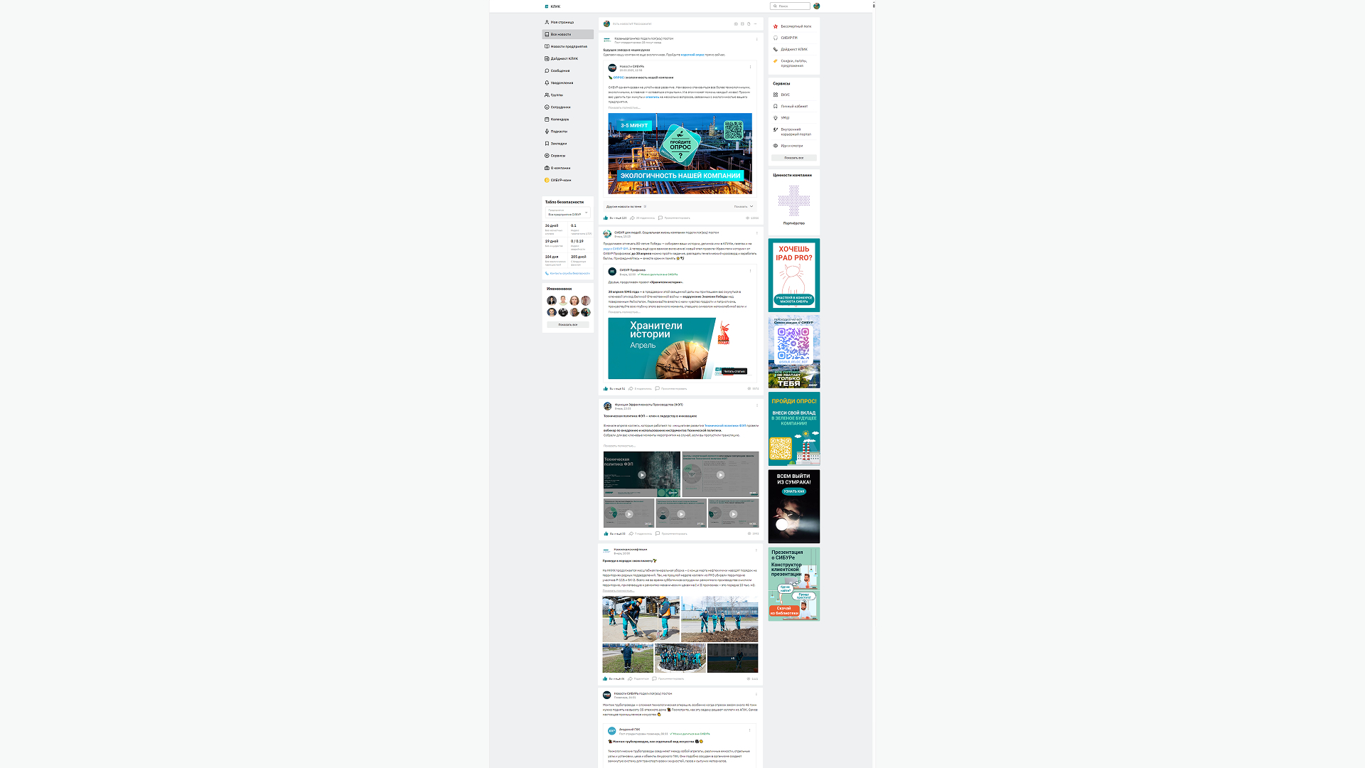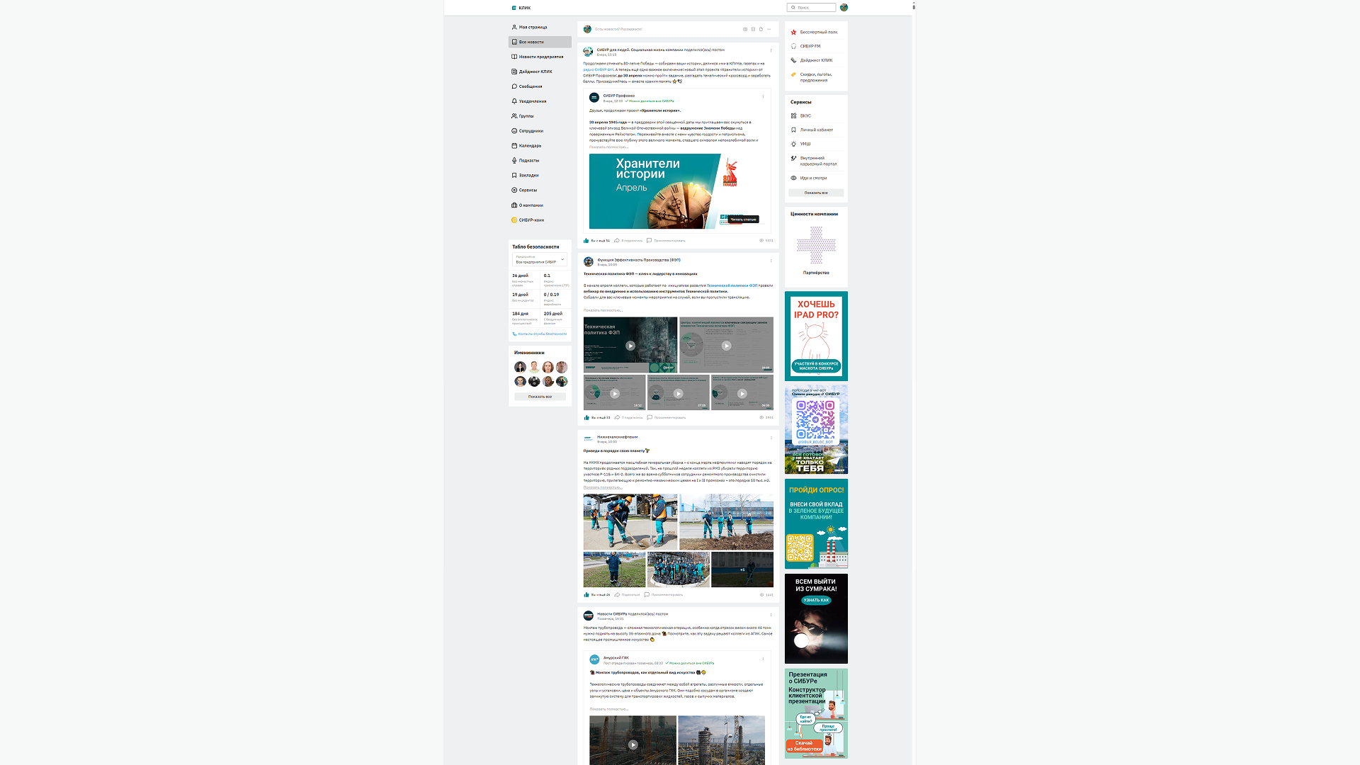 Наш главный канал коммуникаций — внутренняя соцсеть «Клик». Ежемесячно её посещают 90–95% сотрудников, ежедневно — 35–40%. Люди особенно любят там смотреть короткие ролики, читать тёплые истории или контент с участием руководителей.